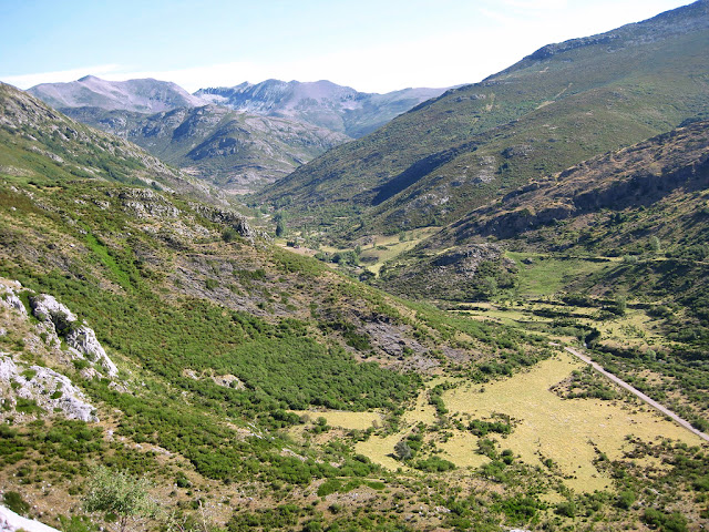 "La arista este, es una subida preciosa, muy aérea, pero en ningún caso expuesta o peligrosa. No tiene ninguna dificultad especial para una persona que esté habituada a caminar por la montaña. Desde luego, la cosa cambia si se trata de una subida invernal con presencia de nieve o hielo, donde todos los años hay que lamentar algún fallecimiento, pero en su ausencia, no le veo ninguna complicación. Sí que es aconsejable realizarla con buen tiempo asegurado, pues seria peligroso pillar un tormentón sobre esas crestas aisladas y expuestas a los elementos (viento, lluvia, niebla etc.). Probablemente la mayor dificultad de la ascensión son los 1.100 metros de desnivel que hay que salvar hasta alcanzar los 2.450 msnm de la cima, pero eso tampoco supone un gran problema para los que están acostumbrados a andar por el monte. Para comenzar la subida, se deja el coche en el aparcamiento que hay unos pocos kilómetros antes del pueblo de Cardaño de Arriba, en donde comienza la senda a la cascada de Mazobre. El aparcamiento está justamente al final de la arista, así que no podríamos encontrar un sitio mejor para dejar el coche. Aunque esto significa no poder calentar los músculos. Al principio el camino sube entre retamas. Hay un montón de senderillos que van ascendiendo por la arista, y se ve que se trata de una ruta bastante transitada. No hay problema para encontrar el camino, simplemente hay que ascender por la arista, sin más, por esta zona no tiene ninguna dificultad. Se gana altura rápidamente, resulta estimulante….. Detrás del valle donde esta Cardaño de Arriba comienza a verse la zona de Peña Prieta y el Pico Tres Provincias (Brañavieja).