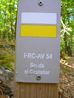 En este lugar el camino gira ciento ochenta grados y se dirige hacia el inicio de la ruta pero manteniéndose a mayor altura que en la primera parte, atravesando el bosque por la mitad. Solamente habrá que estar atentos en una zona en la que la senda se bifurca. En este punto observaremos como las balizas marcan el camino correcto que es el de la derecha que sube ligeramente, haciendo una "S". Por ultimo el camino toma una buena pendiente hacia abajo para volver a juntarse con la primera parte de la ruta. Hay que tener un poco de cuidado de no resbalar, en tiempo seco por lo polvoriento del camino y en invierno por que estará un poco embarrado. Como dije al principio en poco mas de una hora habremos completado el camino circular, algo mas si hemos parado a la mitad para comer algo o para que los enanos retocen. Seguro que habremos disparado alguna foto para enmarcar en un lugar mágico como este y que nos llevaremos de recuerdo, además de alguna que otra castaña en otoño. Es importante recordar otra vez, que la época de mayor esplendor del castañar es precisamente el otoño, cuando mucha gente se acerca a coger castañas o disfrutar de los colores con los que se tiñe el bosque. Se suele saturar de visitas y el ayuntamiento regula el acceso como pasa en el hayedo de Montejo o en la Tejera Negra, así que es conveniente llegar pronto si queremos aparcar el coche sin problemas.